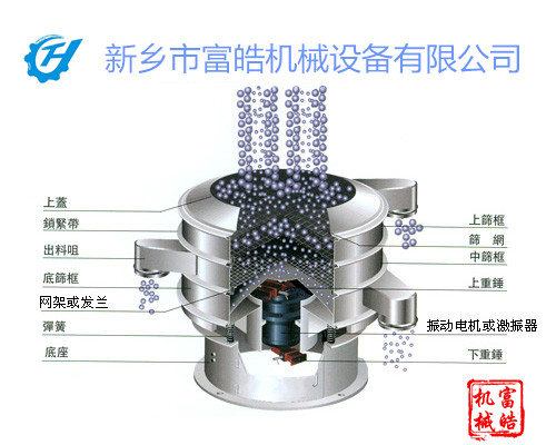 新鄉(xiāng)市富皓機(jī)械設(shè)備有限公司專業(yè)設(shè)計(jì)、生產(chǎn)的各種型號(hào)“旋振篩”是三次元振動(dòng)篩其中的一種,由富皓專用立式振動(dòng)電機(jī)作為激振源,電機(jī)上、下兩端安裝有偏心重錘,將電機(jī)的旋轉(zhuǎn)運(yùn)動(dòng)轉(zhuǎn)變?yōu)樗?、垂直、傾斜的三次元(三維)運(yùn)動(dòng),再把這個(gè)運(yùn)動(dòng)傳遞給篩面進(jìn)行篩分。再把這個(gè)運(yùn)動(dòng)傳遞給篩面進(jìn)行篩分。調(diào)節(jié)上、下兩端的相位角,可以改變物料在篩面上的運(yùn)動(dòng)軌跡。 從而使物料迅速通過篩網(wǎng),達(dá)到篩分目的。因而又名旋振篩、旋震篩、XZS振動(dòng)篩、震動(dòng)篩、圓形振動(dòng)篩、圓振篩、不銹鋼振動(dòng)篩、多層篩分機(jī)、篩粉機(jī)、振動(dòng)過濾機(jī)、分級(jí)篩、振蕩篩等。