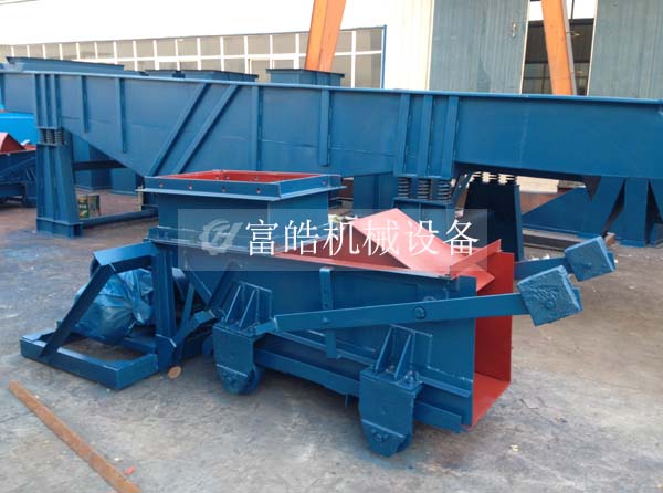 振動喂料機又稱振動給料機,我公司生產(chǎn)的給料機是專為破碎篩分中粗破碎機前均勻輸送大塊物料而設(shè)計的新型振動給料機。該給料機采用雙偏心軸激振器的結(jié)構(gòu)特點,保證設(shè)備能承受大塊物料下落的沖擊,給料能力大。在生產(chǎn)流程中可以把塊狀、顆粒狀物料從貯料倉中均勻、定時、連續(xù)地給到受料裝置中去,從而防止受料裝置因進料不均而產(chǎn)生死機的現(xiàn)象,延長了設(shè)備使用壽命。