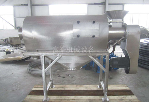 本設(shè)備篩網(wǎng)為圓筒狀,置于機(jī)體內(nèi),物料通過螺旋輸送系統(tǒng)后,和氣流混合、霧化進(jìn)入網(wǎng)筒內(nèi);通過網(wǎng)筒內(nèi)風(fēng)輪葉片使物料同時(shí)受離心力和旋風(fēng)推進(jìn)力,從而迫使物料噴射過網(wǎng),由細(xì)料排出口排出,不能過網(wǎng)的物料沿筒壁從粗料排出口排出。