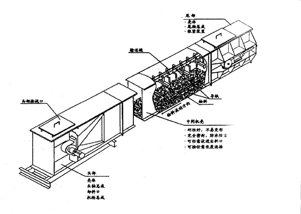 5.進出口靈活,高架、地面、地坑、水平、爬坡(≤15°)均可安裝,輸送長度可根據(jù)用戶設(shè)計。