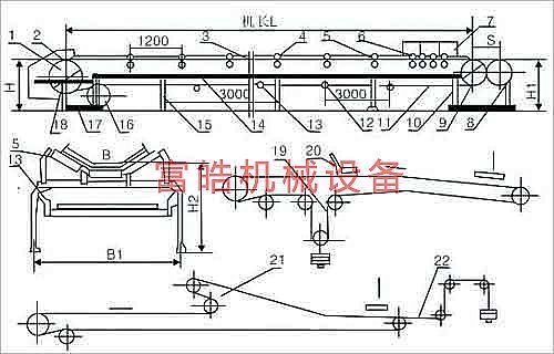 TD型、DⅡ型皮帶輸送機(jī)結(jié)構(gòu)圖: