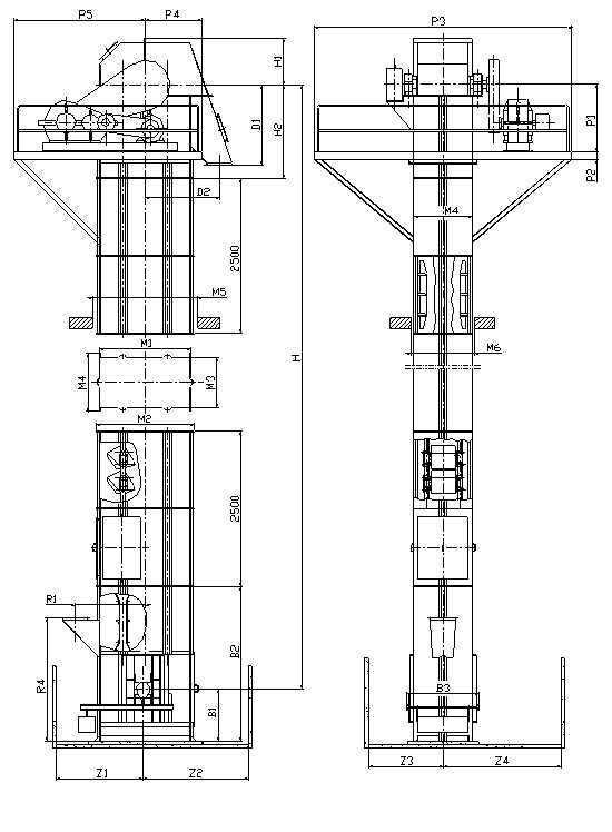 NSE斗式提升機外形尺寸圖: