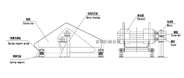 ZSR系列熱礦振動篩為座式安裝,采用雙軸振動器振動。雙軸振動器兩根軸由兩臺電動機分別帶動做反向自同步旋轉,使篩箱產(chǎn)生直線振動。電動機安裝在篩箱側面的固定支架上,故電動機不參振。電動機和雙軸振動器之間,兩臺雙軸振動器之間均采用萬向聯(lián)軸器連接,萬向聯(lián)軸器同時具有角度和長度的補償作用,可以滿足篩機工作時電動機和振動器之間的相對位移要求。根據(jù)電動機和振動器安裝位置的不同,熱礦振動篩可制定成上振式或下振式。該系列熱礦振動篩均配備二次隔振系統(tǒng),對基礎的動負荷較小,使用于有隔振減振要求,安裝高度允許的場合。熱礦篩篩箱的側板與橫梁采用優(yōu)質耐熱不銹鋼(或優(yōu)質耐熱鋼)制造,主受力板和側板的連接,側板和橫梁的連接采用環(huán)槽鉚釘鉚接,連接緊固可靠。熱礦振動篩工作時,篩板直接與高溫物料接觸,要求有較好的耐磨、耐熱性能,故采用耐熱合金鑄鋼。工作時 篩板會受熱膨脹,篩板固定裝置采用斜插緊固,并設有熱補償機構,可保證工作溫度狀態(tài)下,篩板固定牢靠,篩板拆裝也比較方便。